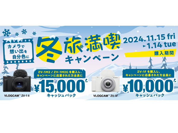 ソニー、最大15,000円キャッシュバックの「冬旅満喫キャンペーン」
